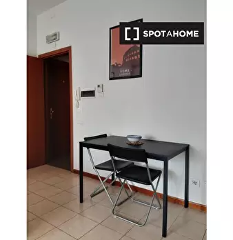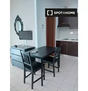 Scopri questo grazioso monolocale situato nel quartiere Gordiani di Roma. L'appartamento è arredato, dotato di aria condizionata individuale, balcone e cucina attrezzata. Tutte le utenze sono incluse e la biancheria da letto è fornita. L'edificio ...