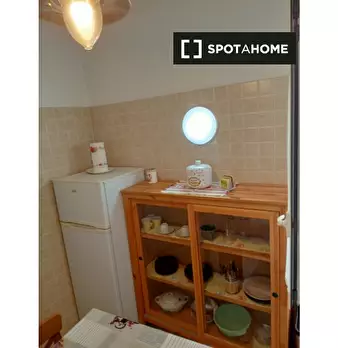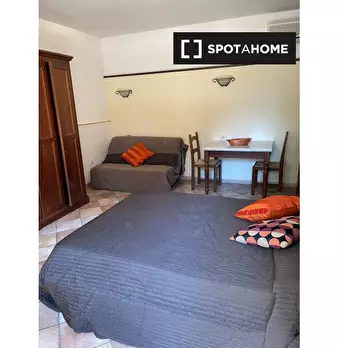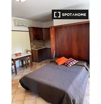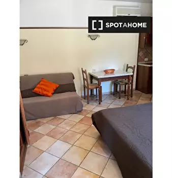 Questo delizioso monolocale è disponibile per l'affitto a Vermicino, Roma. La proprietà comprende un letto matrimoniale e un divano, un tavolo e sedie da pranzo e una stufa elettrica. Il bagno è dotato di doccia, bidet, wc e doccia. L'appartament...