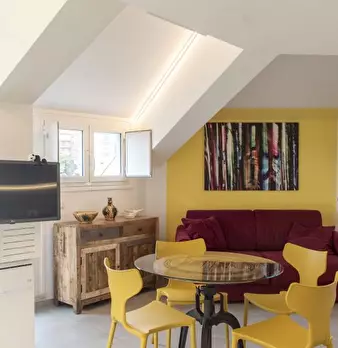 Benvenuti in questo grazioso monolocale situato nel vivace quartiere di Trastevere. Questa proprietà completamente arredata dispone di una cucina attrezzata con forno e lavastoviglie, lavatrice privata, aria condizionata individuale e TV per le vo...