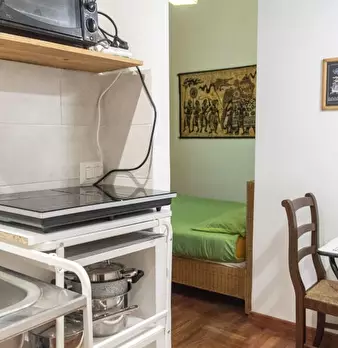 Scopri questo monolocale con vista esterna in affitto situato nell'incantevole quartiere di Trastevere a Roma. L'immobile è completamente arredato e dispone di aria condizionata individuale e cucina attrezzata con forno. Questo monolocale è adatto...