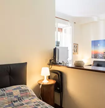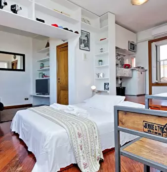 Questo monolocale arredato situato nel Rione Sant'Eustachio, a Roma, è un'ottima scelta per professionisti o studenti. L'immobile dispone di aria condizionata individuale, cucina attrezzata e TV. La biancheria da letto è inclusa nell'affitto. Il W...