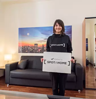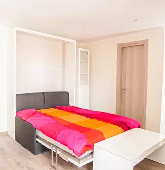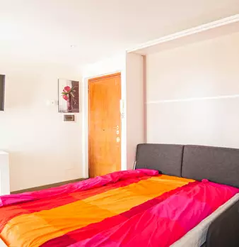 Questo moderno monolocale è completamente arredato con un letto pieghevole, che offre uno spazio aggiuntivo. L'appartamento è stato recentemente ristrutturato e dispone di una cucina aggiornata. Il balcone esterno ha molto spazio per gli amici e u...