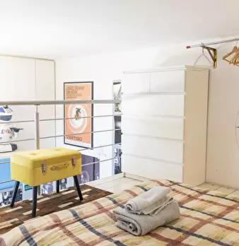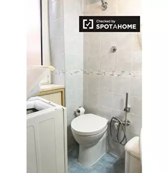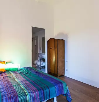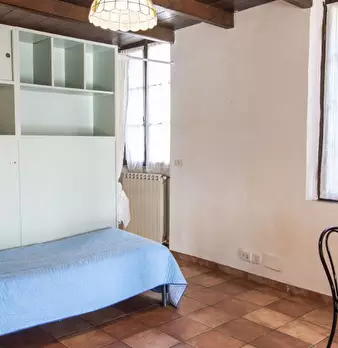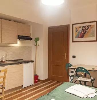 Questo monolocale arredato è disponibile in affitto a Garbatella, Roma. Il monolocale ha un letto matrimoniale e uno singolo e un tavolino con sedie, mentre la zona cucina è dotata di lavastoviglie e piano cottura. Il bagno è dotato di wc, lavabo ...