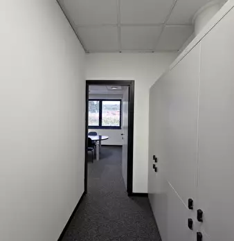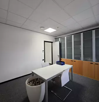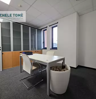 L'ufficio si trova al primo piano di una palazzina direzionale edificata nelle immediate vicinanze del casello autostradale. La superficie interna è suddivisa in due locali a mezzo di una parete in cartongesso ed è inoltre presente una zona utiliz...