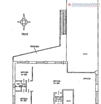 Su strada di forte passaggio, luminoso ufficio di circa 120 mq al piano primo. L'immobile si compone di tre vani di cui uno molto grande con doppio ingresso, bagno e ripostiglio. Le ampie vetrate garantiscono ampia luminosità all'ambiente e visibi...