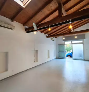 BOLOGNINA (Via De Giovanni) libero subito locale commerciale in ottime condizioni ad uso laboratorio 90 mq open space con doppio ingresso (1 vetrina su strada e 1 vetrina su corte interna per carico/scarico) doppi servizi con antibagno termo auton...