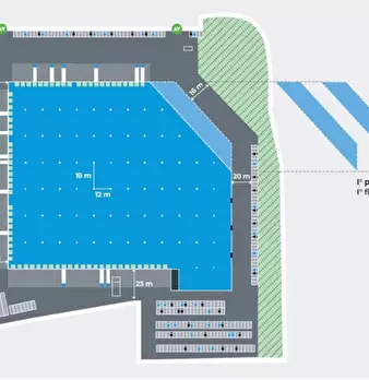 Proponiamo in locazione magazzino cross-dock in zona Piacenza. L'immobile di mq 19.964 ca. e' cosi' composto: mq 18.560 ca. di laboratorio e mq 1.386 ca. di uffici. Al suo interno sono presenti 87 baie di carico per camion e 39 baie di carico per ...