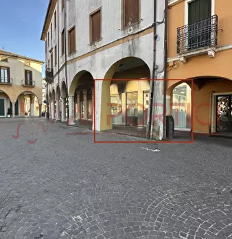 PIOVE DI SACCO Centro Storico - NEGOZIO di circa 30 mq + eventuale soppalco di ulteriori 10 mq. In posizione unica affianco al Duomo con 3 vetrine su porticato "alto" che permette la massima visibilità e luminosità! Completo di servizio e condizio...