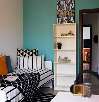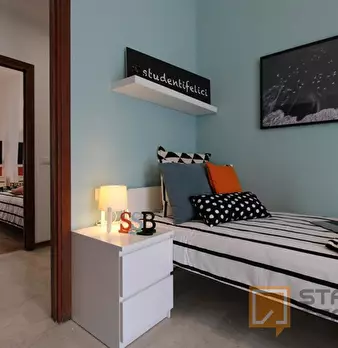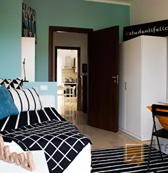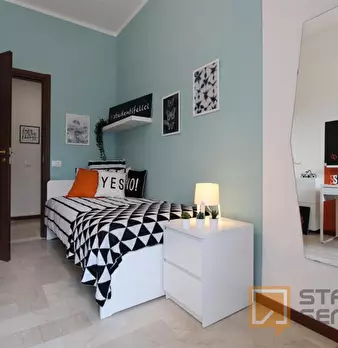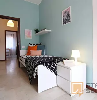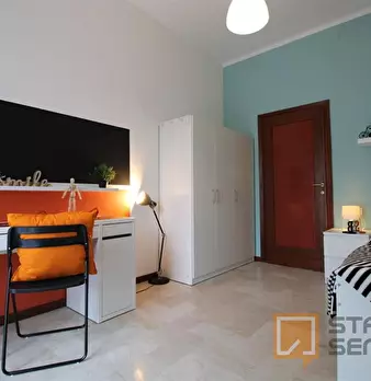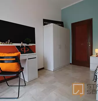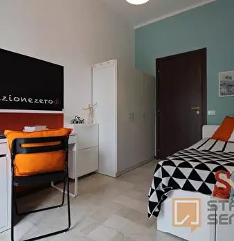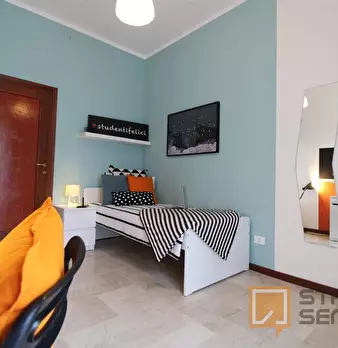 Luminosa stanza singola con balcone. In zona Mompiano, posizione strategica e ambita. La stanza è dotata di letto singolo, armadio 3 ante, scrivania con portaoggetti, comodino, tendaggi, specchio, scarpiera e libreria. I colori delle pareti favori...