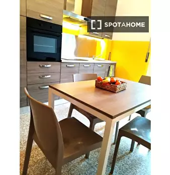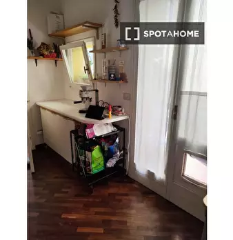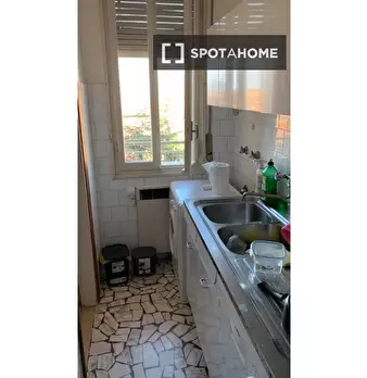 Questa stanza in un appartamento condiviso con 4 camere da letto a Marconi, Bologna, è arredata e dispone di cucina attrezzata, lavastoviglie, forno e balcone in comune. Tutte le utenze, tra cui elettricità, acqua, gas e Wi-Fi, sono incluse, garan...