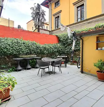 Newly renovated apartment in the center of Florence, has 3 bedrooms for single use, 2 bathrooms, 1 living room, 1 equipped kitchen, an internal courtyard with tables and chairs and another internal courtyard for bicycle parking. It is located on t...