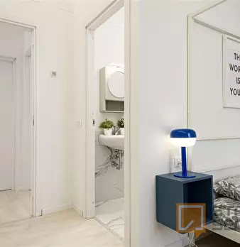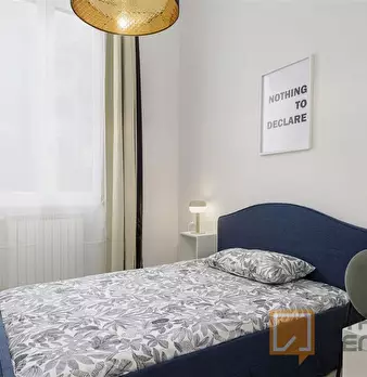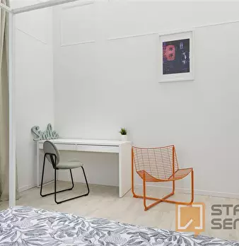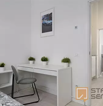 Spacious, bright and comfortable room, composed of a bed, a big wardrobe, big bookshelf, a desk and chair. The room is situated in an apartment on the second floor with 4 bedrooms, two bathrooms (only one bathroom has a shower), a totally equipp...