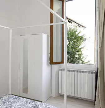 Very nice double bedroom inside Attic apartment, private bathroom inside the bedroom. Location: hearth of Florence, along the Arno river, just few minutes walking far from Santa Maria Novella train station. Amenitoes: elevator, tv, washing machine...