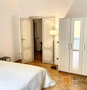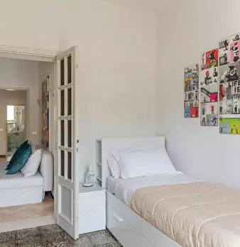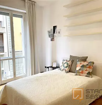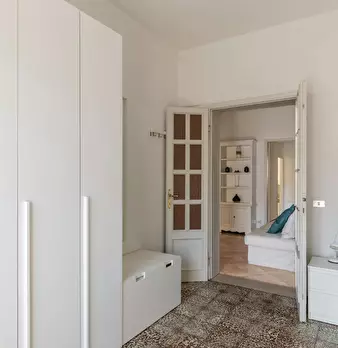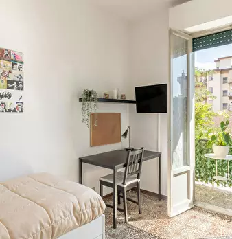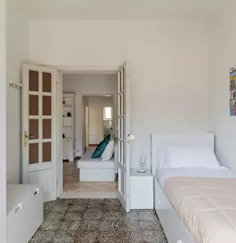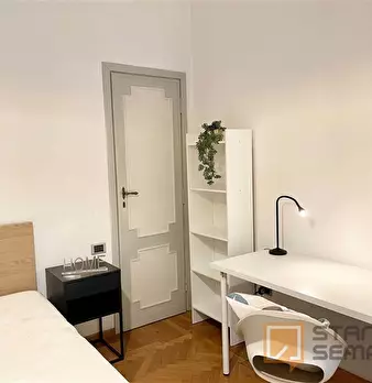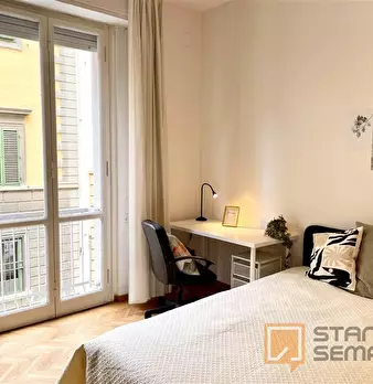 The room, very large and bright, has parquet flooring, bed (it could be changed with a queen-size bed on request), bedside table, wardrobe, desk with seat, TV connection, Wi-Fi and autonomous heating/air conditioning. The apartment, recently reno...