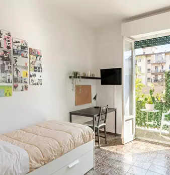 SPACIOUS LUMINOUS BEDROOM WITH PRIVATE BALCONY! SMART OFFER 750 EURO Spacious, luminous SMART. bedroom 750 euro monthly rent inclusive of water, gas, electricity and unlimited Internet in SMART apartment within 5 minutes walking distance of f...