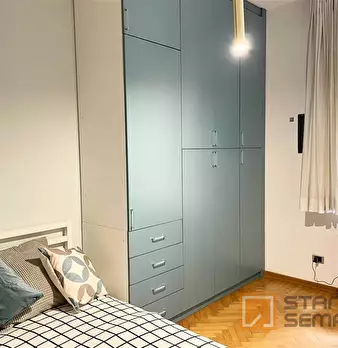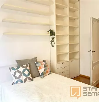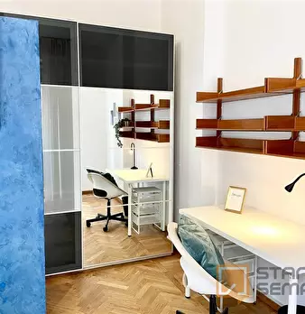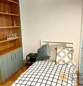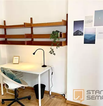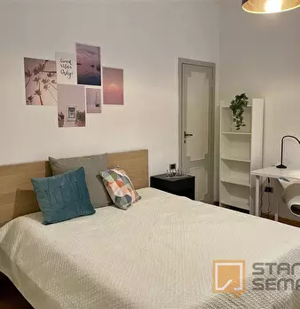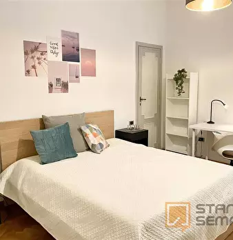 Spacious, bright and comfortable room, composed of a bed, a big wardrobe, big bookshelf, a desk and chair. The room is situated in an apartment on the second floor with 4 bedrooms, two bathrooms (only one bathroom has a shower), a totally equipp...