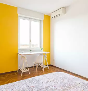 Spotahome presenta con orgoglio questa stanza in un appartamento condiviso con 4 camere da letto situato a De Angeli-Monte Rosa, Milano. L'appartamento è completamente arredato, dispone di riscaldamento centralizzato e comfort moderni come lavatri...