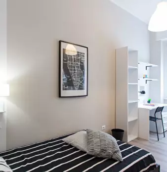 Questa camera arredata fa parte di un appartamento condiviso con 3 camere da letto situato a Buenos Aires-Venezia, Milano. L'appartamento dispone di una cucina completamente attrezzata con forno e lavastoviglie, riscaldamento centralizzato e lavat...
