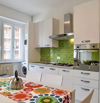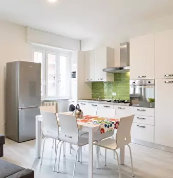 Le camere soleggiate sono disponibili per il noleggio in un'affascinante suite con balcone a Musocco. L'appartamento ha una spaziosa cucina con tutto il necessario per cucinare una tempesta, tra cui un forno, una grande stufa e un grande tavolo da...