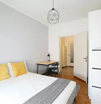 Single room in a shared apartment, composed by 7 bedrooms and 4 bathrooms. Of about 18 sqm with a one and a half bed and a work station. With wifi, air conditioning, concierge services, dishwasher, washing machine. Energy class: E, IPE 152.88 Kwh/...