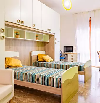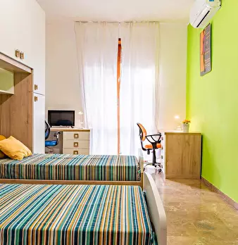 The apartment of viale Enrico Martini 9 is a shared multi-room apartment for university students, interns or young workers. It consists of an entrance hall, 3 bedrooms, of which two shared rooms and one private room with private bathroom, a kitche...