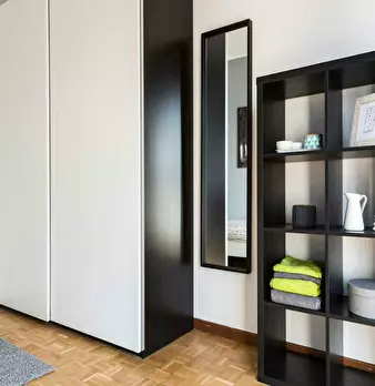 Located in *Cesano Boscone* , this bright fifth-floor room offers a quiet corner in a well-equipped flat close to local services and transport links. The room is 20 m2 with a comfortable *Queen Size Bed* and access to a fully fitted apartment feat...