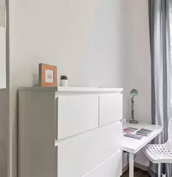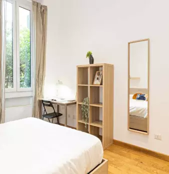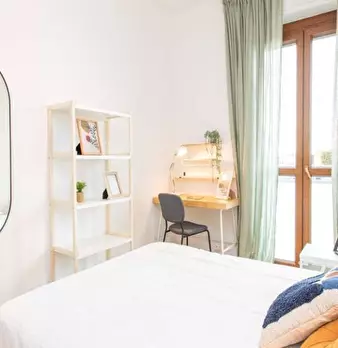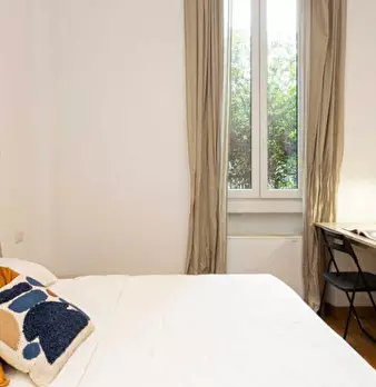 Questa stanza in un appartamento condiviso con 4 camere da letto situato a De Angeli-Monte Rosa, Milano, è disponibile per l'affitto. Completamente arredato, questo accogliente spazio offre servizi essenziali come una lavatrice privata, una cucina...