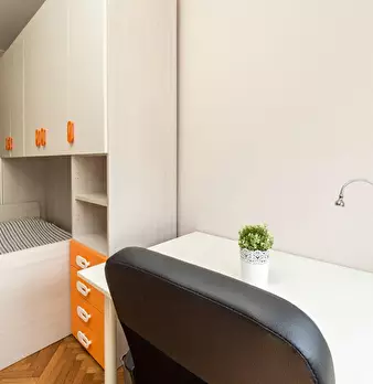 Single room in a shared apartment, composed by 12 bedrooms and 5 bathrooms. Of about 17 sqm with a one and a half bed and a work station. With wifi, concierge services, dishwasher, washing machine. Energy class: F, IPE 115.72 Kwh/Sqm year. Curre...