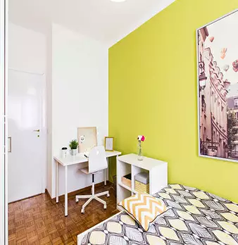 Located in *Lorenteggio / Bande Nere / Primaticcio / Bisceglie* , this bright room offers easy access to Milan’s dynamic west side and local services. The *Room* measures 10.64 m2 and includes a comfortable queen-size bed. Enjoy essential comforts...
