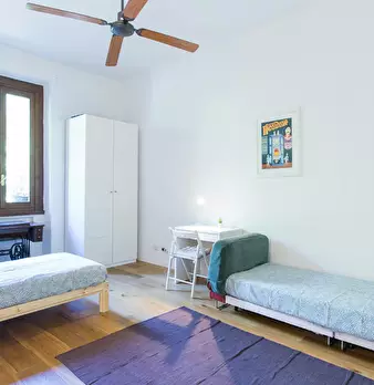 Located in the vibrant *Porta Genova / Navigli / Ticinese* district, this bright room offers easy access to Milan's best canal-side bars and transport links. The room is 18 m2 with a balcony and sits within a 4-room flat. The apartment includes tw...