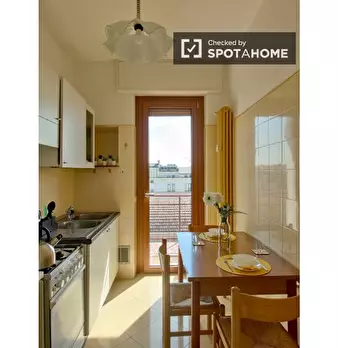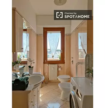 Benvenuti in questa stanza in un appartamento condiviso con 2 camere da letto a Lodi-Corvetto, Milano. L'appartamento è arredato e dotato di cucina attrezzata, lavastoviglie e forno. Offre inoltre un servizio di pulizia periodico e la biancheria d...