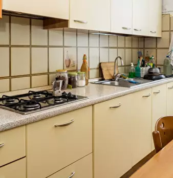 Questo appartamento con 3 camere da letto ha 1 bagno in comune e 3 camere completamente arredate a noleggio. L'appartamento dispone di una cucina molto ordinata, attrezzata con una stufa a gas, forno, lavastoviglie, e un piccolo tavolo da pranzo. ...