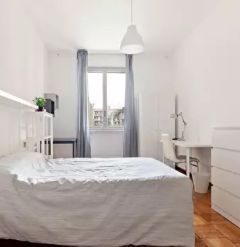 Questa camera in un appartamento condiviso con 4 camere da letto situato nel quartiere QT8 di Milano offre comfort e praticità. Completamente arredato, l'appartamento dispone di una cucina attrezzata e di un balcone, offrendo uno spazio accoglient...