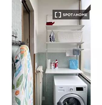 Questa è una stanza arredata in un appartamento condiviso con 7 camere da letto a San Giuseppe, Padova. L'appartamento offre servizi essenziali, tra cui lavatrice e asciugatrice private, balcone o terrazza, TV e cucina attrezzata con forno. Si tra...