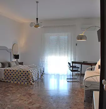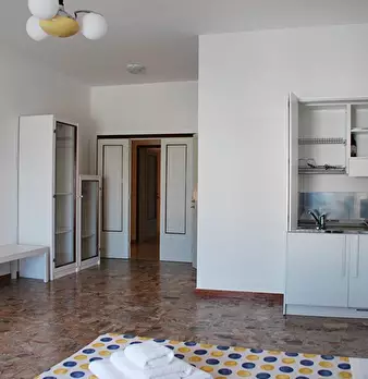 All'interno di un maggiore appartamento, al 4° piano con ascensore, ampio monolocale elegantemente arredato (un letto matrimoniale, un divano letto singolo, armadi, tavolo e sedie) con bagno in camera completo di lavatrice, angolo cottura completo...