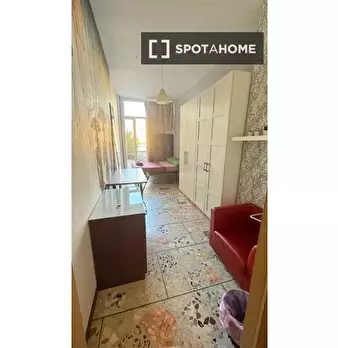 Questa camera in un appartamento condiviso con 4 camere da letto si trova nel vivace quartiere Pigneto di Roma. L'appartamento è arredato e dotato di riscaldamento centralizzato, garantendo condizioni di vita confortevoli. La cucina è completament...
