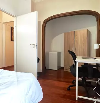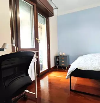 Questa camera arredata in un appartamento condiviso situato nel quartiere Portuense di Roma è ideale per studenti. L'appartamento è dotato di una cucina attrezzata con elettrodomestici moderni come forno e lavastoviglie. La camera è dotata di arre...