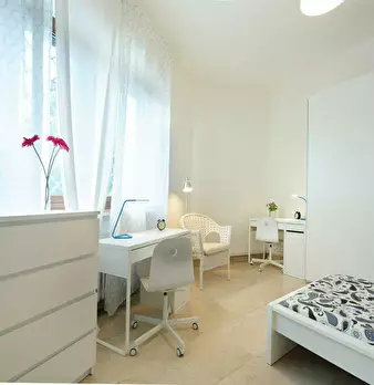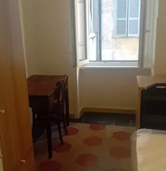 The comfortable bedroom measures 13 square meters and is equipped with a bed, desk, and closet. The room is perfect for a working professional or student seeking a peaceful and comfortable living space in the heart of Rome. This accommodation is l...