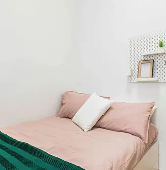 Spacious room with double bed size and private fridge for rent in a 3 (hidden)/young workers apartment with 1 bathroom in Quadraro area, convenient to reach easily La Sapienza University and Tor Vergata University.. The apartment is on the 5th flo...