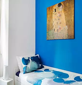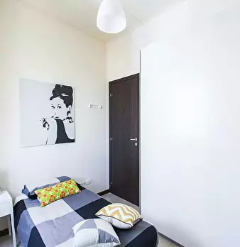 20 square meter spacious and sunny room, cosy and freshly painted, with access to a large shared balcony, 120 x 200 cm large bed, 24cm thick mattress; in a 4-bedroom apartment, recently renovated, two shared bathrooms, a shared kitchen and dining...