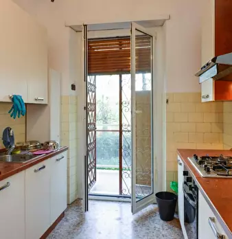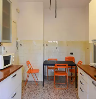 Spacious single room with private fridge and terrace for rent in a 6 (hidden)/young workers apartment with 2 bathrooms in Marconi area, near Roma Tre University and UNINT. The apartment is on the 2nd floor with lift, it is 12 minute walking far fr...