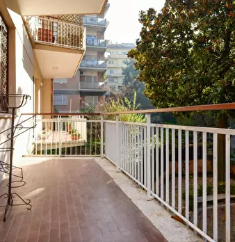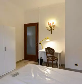 Spacious room with double bed size, private fridge and private balcony for rent in a 6 (hidden)/young workers apartment with 2 bathrooms in Piazza Bologna, near La Sapienza University. The apartment is on the 2nd floor with lift, it is 8 minutes w...