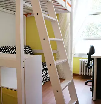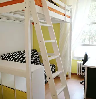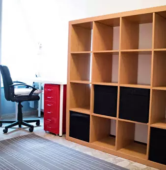 Large single bedroom with double bed, relaxation area with sofa and coffee table, study station, wardrobe with mirror, bookcase, shoe rack. Very bright and quiet thanks to the large window overlooking the garden. The room is also available FOR COU...