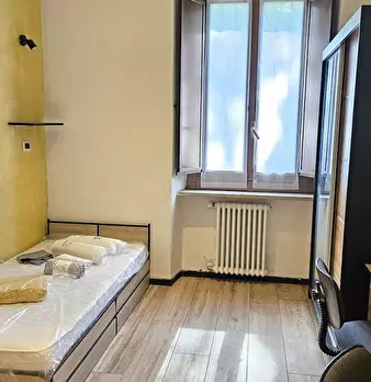 Questa camera arredata in un appartamento condiviso con 3 camere da letto è ora disponibile per l'affitto a Barriera di Milano, Torino. L'appartamento è dotato di ascensore e la camera si affaccia su un balcone, ideale per il relax. La cucina è co...