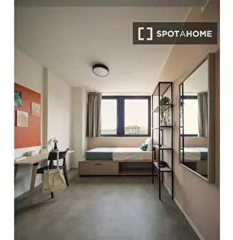 Camera con bagno in comune. Si trova all'interno di un appartamento con 3 camere (due singole e una doppia in totale) con soggiorno, cucina completamente attrezzata e TV. La superficie della camera è di circa 13 m². La camera è composta da un lett...
