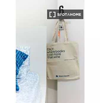 Questa stanza in un appartamento condiviso con 3 camere da letto a Molinette-Millefonti, Torino, offre un ambiente confortevole con servizi essenziali. La stanza è completamente arredata, include il riscaldamento e l'accesso a una lavatrice comune...