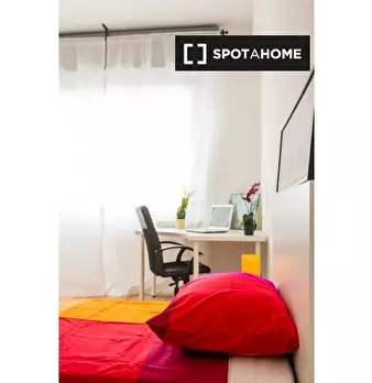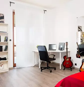 Questa stanza con vista esterna in un appartamento condiviso con 5 camere da letto è perfetta per studenti in cerca di un alloggio nel vivace quartiere di San Salvario. L'appartamento è completamente arredato, include un balcone e il riscaldamento...