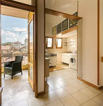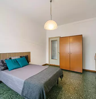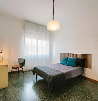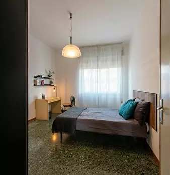 Matrimoniale con accesso al terrazzo in appartamento condiviso. L'immobile è composto da 7 stanze ad uso singola, 4 bagni, 2 terrazzio, deposito bagagli, deposito biciclette. L'appartamento è situato appena fuori le mura del centro storico, è ser...