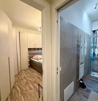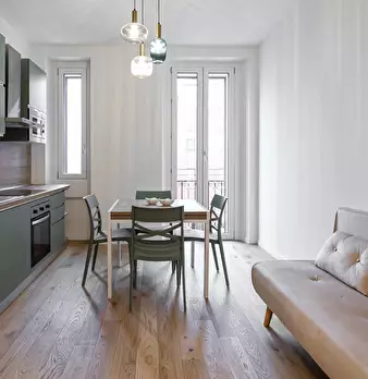 Appartamento bilocale al terzo piano in un palazzo nuovo in zona Corvetto. L'appartamento é ristrutturato a nuovo con tutti i comfort e nuovi arredi. Dispone di un soggiorno con un angolo cottura, bagno e camera da letto matrimoniale e balcone. ...
