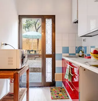Accogliente monolocale di 30 mq con patio privato, in grado di ospitare fino a 2 persone, situato al piano terra (presenza di gradini) di un palazzo d'epoca in buone condizioni. L'immobile si trova nel quartiere San Frediano, zona estremamente tra...
